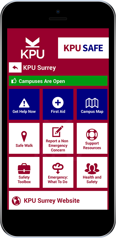 KPU Safe is the best way to stay up to date in the event of a safety or security issue at KPU, such as during an emergency or weather-related campus closure.