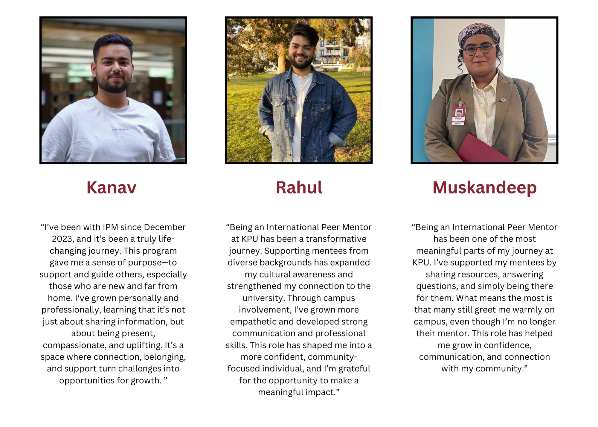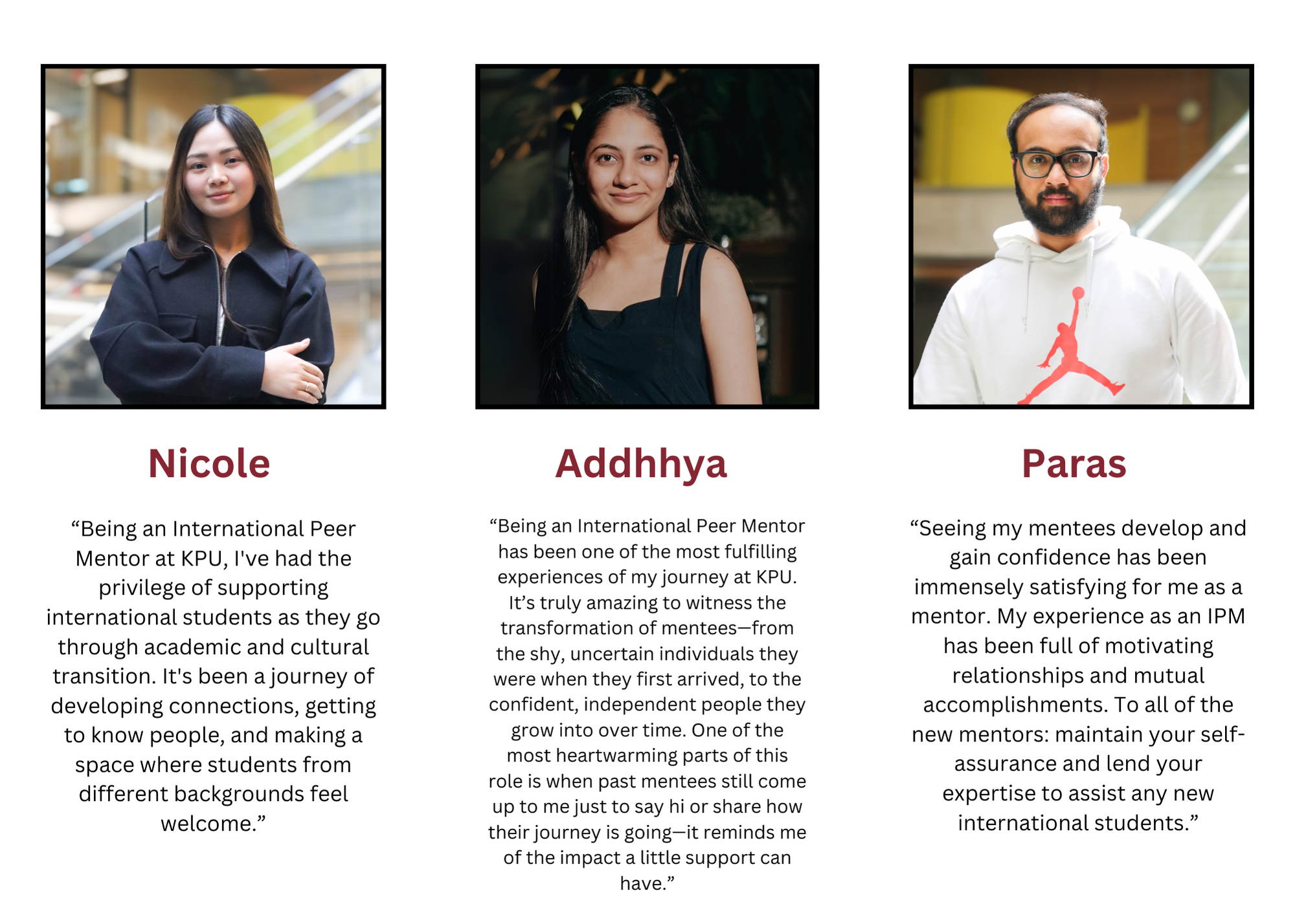 Join the IPM's New Student Welcome Social! If you're embarking on your first term at KPU as a new student, you'll have the opportunity to participate in our welcome social, which is organized by KPU International Student Life team and supported by the peer mentors. The event is typically scheduled during the first week of classes. You should receive an invitation from your mentor about a week before the event.