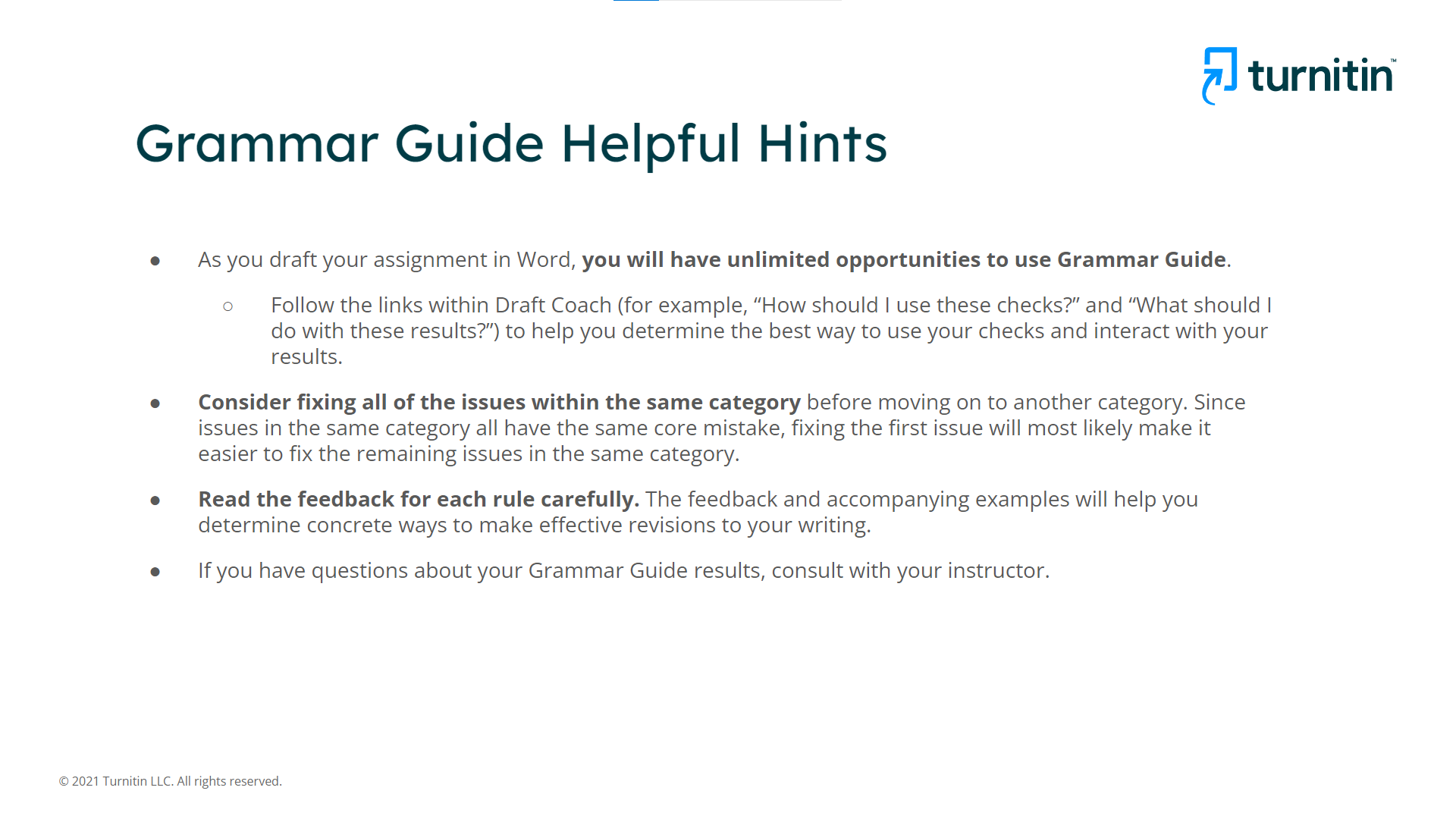 Draft Coach is a tool created by Turnitin that can help you avoid plagiarism, as well as help you with your writing, citations, and grammar.
