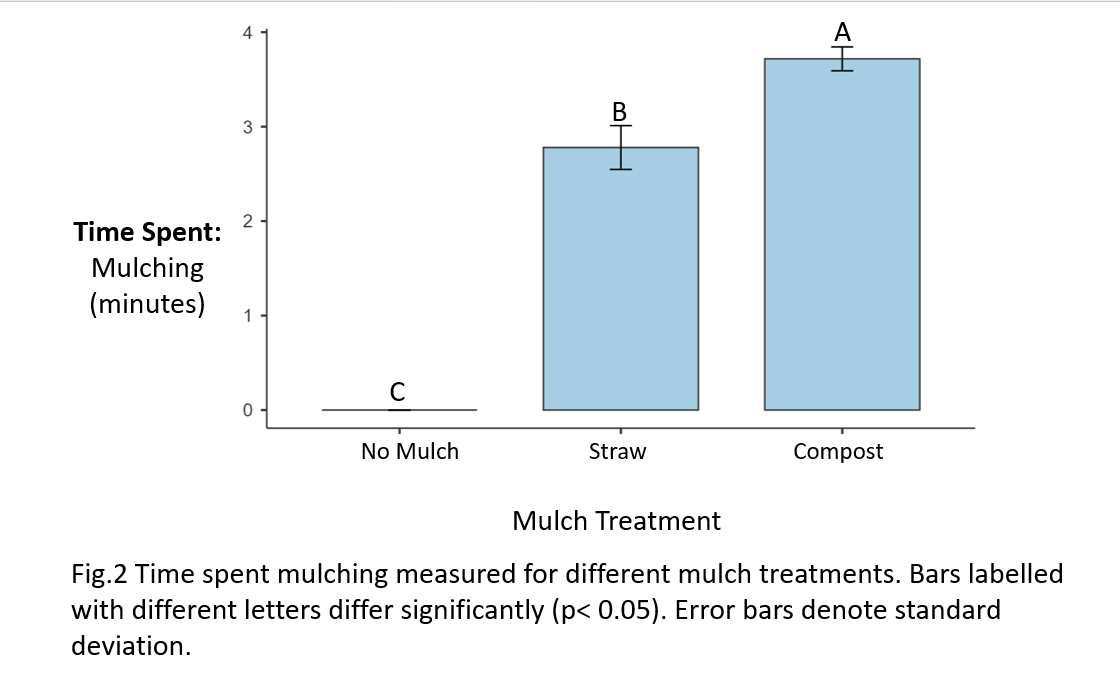 The composted mushroom manure took significantly longer to spread than the straw mulch (Fig. 2).