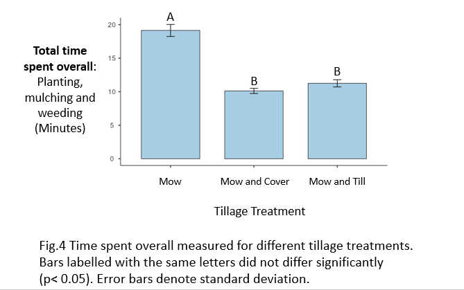 - Time spent overall: planting, mulching and weeding (among tillage treatments)