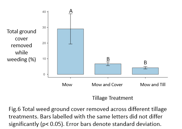 There was significantly (P0.05) more time spent overall in the plots where the cover crop was only mowed as compared to the plots where the cover crop was mowed and covered or tilled into the soil (Fig. 4).