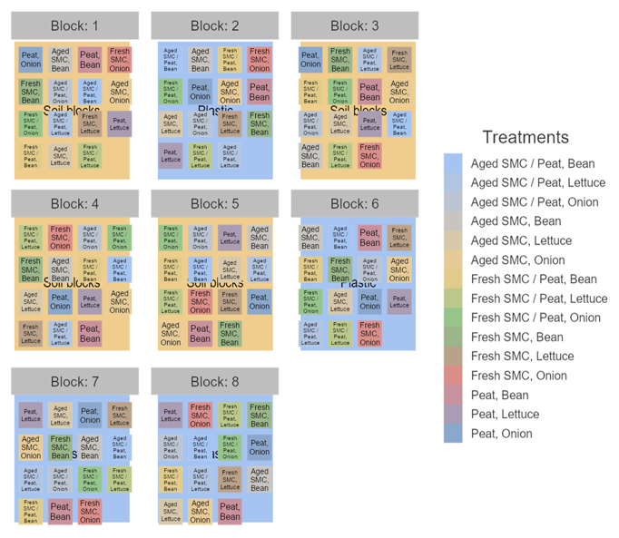 - Main plot factor: Seeding method (soil block or plastic plug tray)