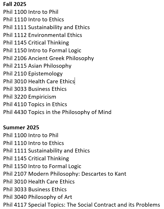 Philosophy courses run throughout the year. To learn more, see the courses descriptions in the calendar.