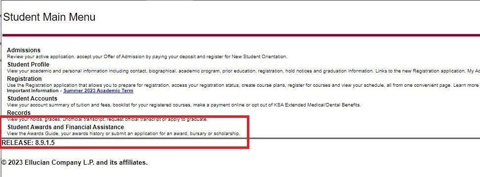- On the Web Application page, look for the APPLICATION TYPE: Spring/Fall Term 20xx Major Entrance Scholarships & Awards. Click on “Apply” and start your application.