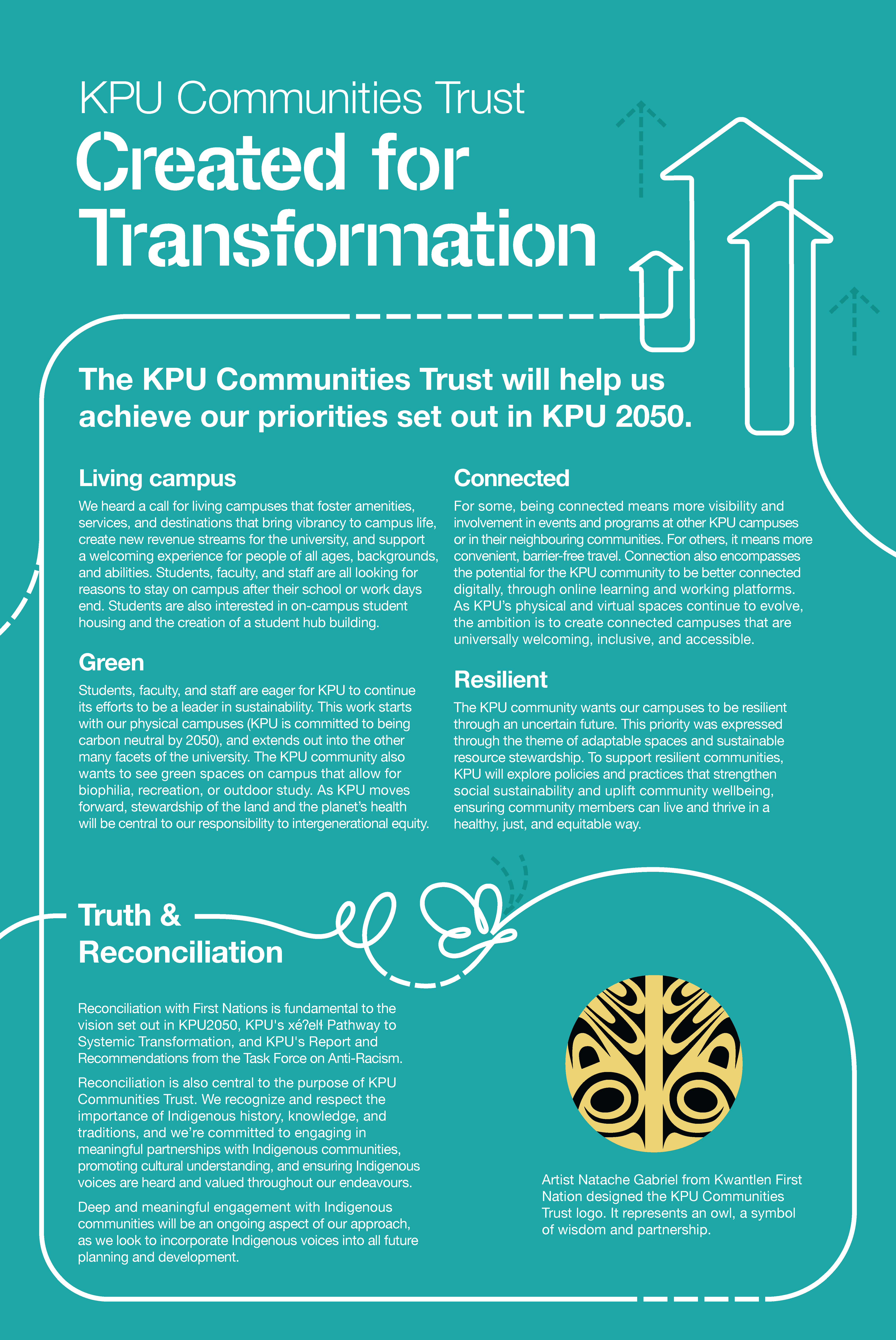 Our campuses evolve. This can affect our on-campus community, along with our campus neighbours. Campus and Community Planning hosts community engagement activities to invite KPU’s students and employees to provide input into each major planning and capital project. We also maintain relationships with local Indigenous communities and local, regional, provincial and federal governments through various ongoing engagement efforts.