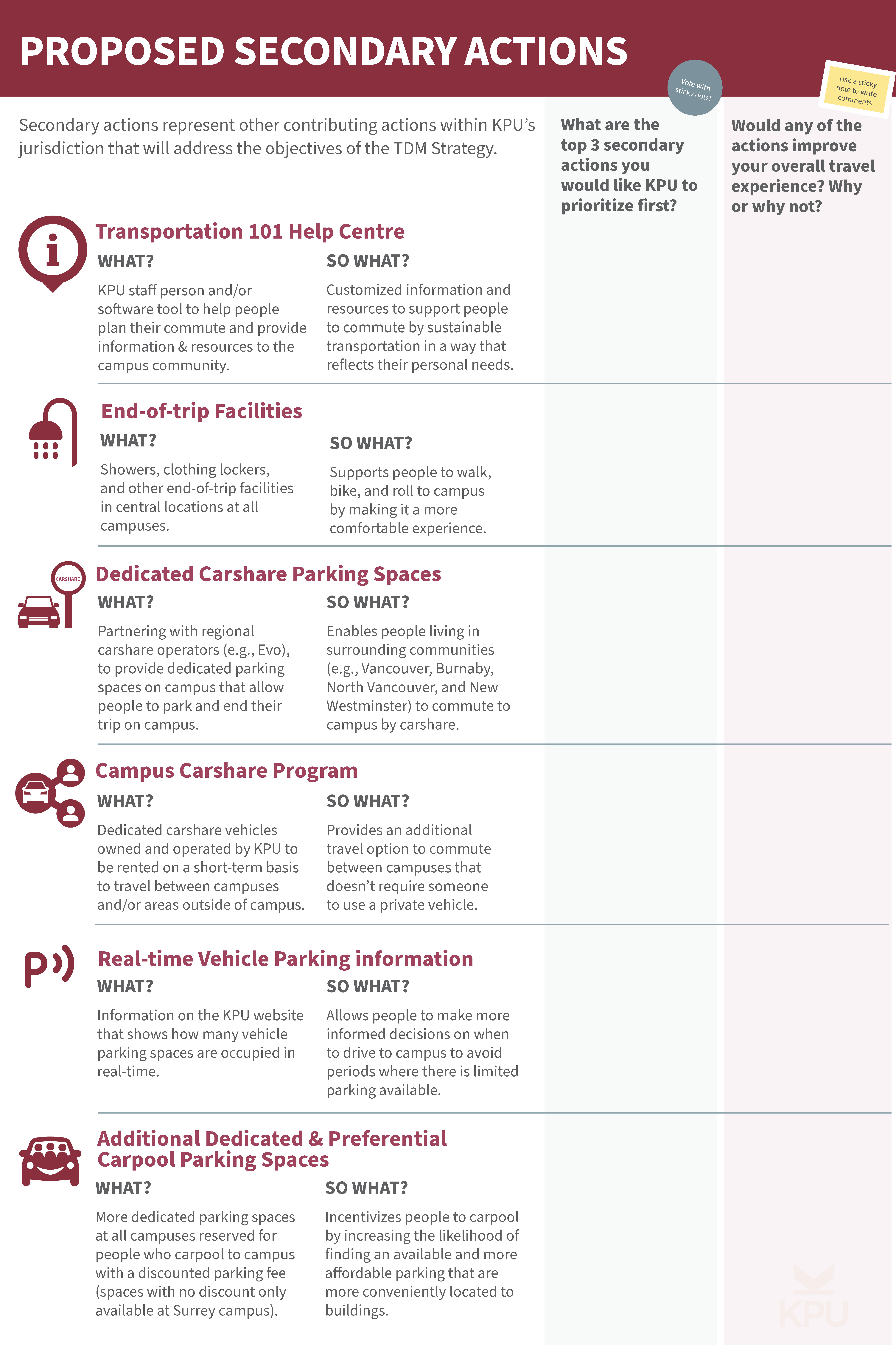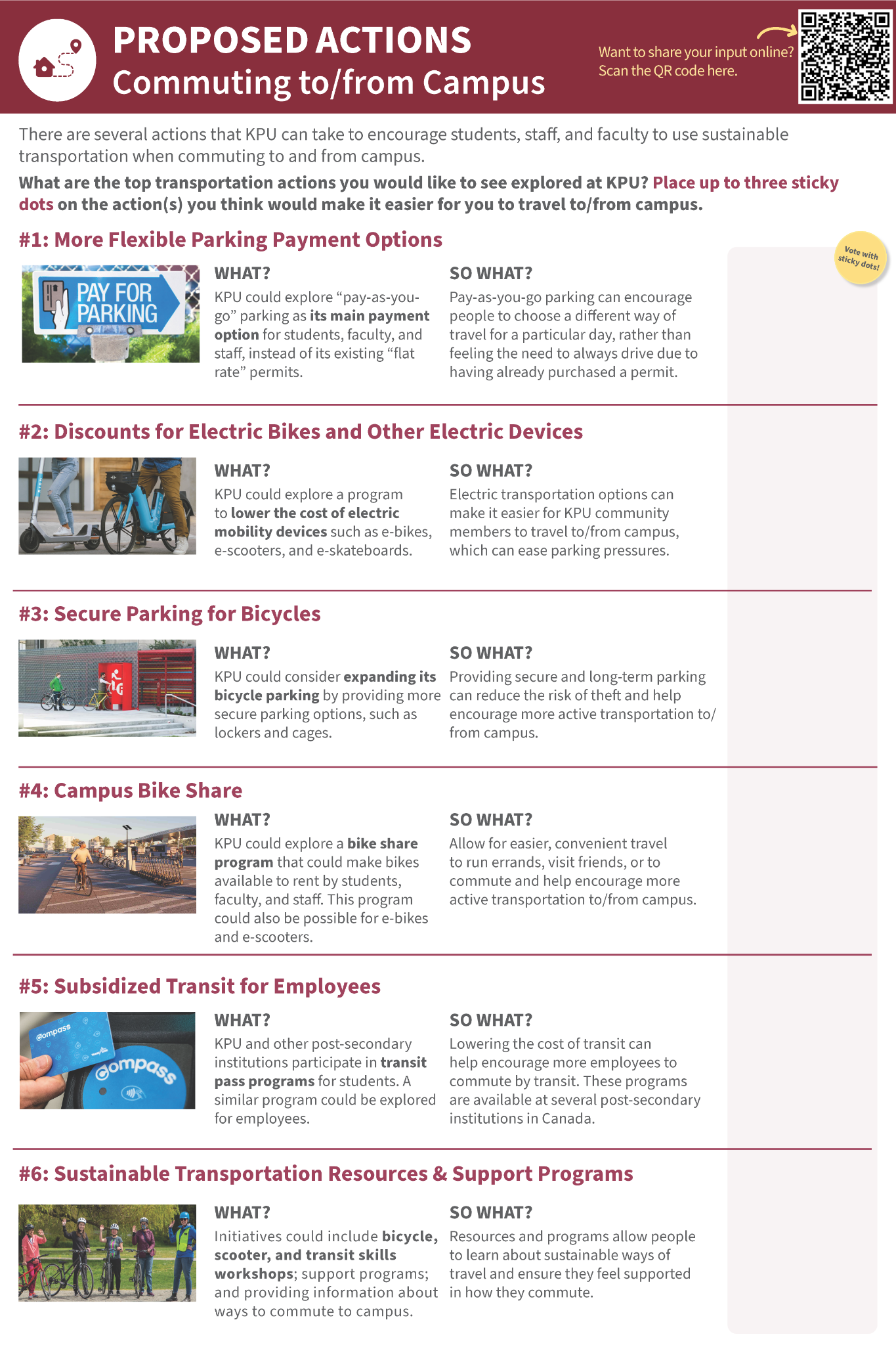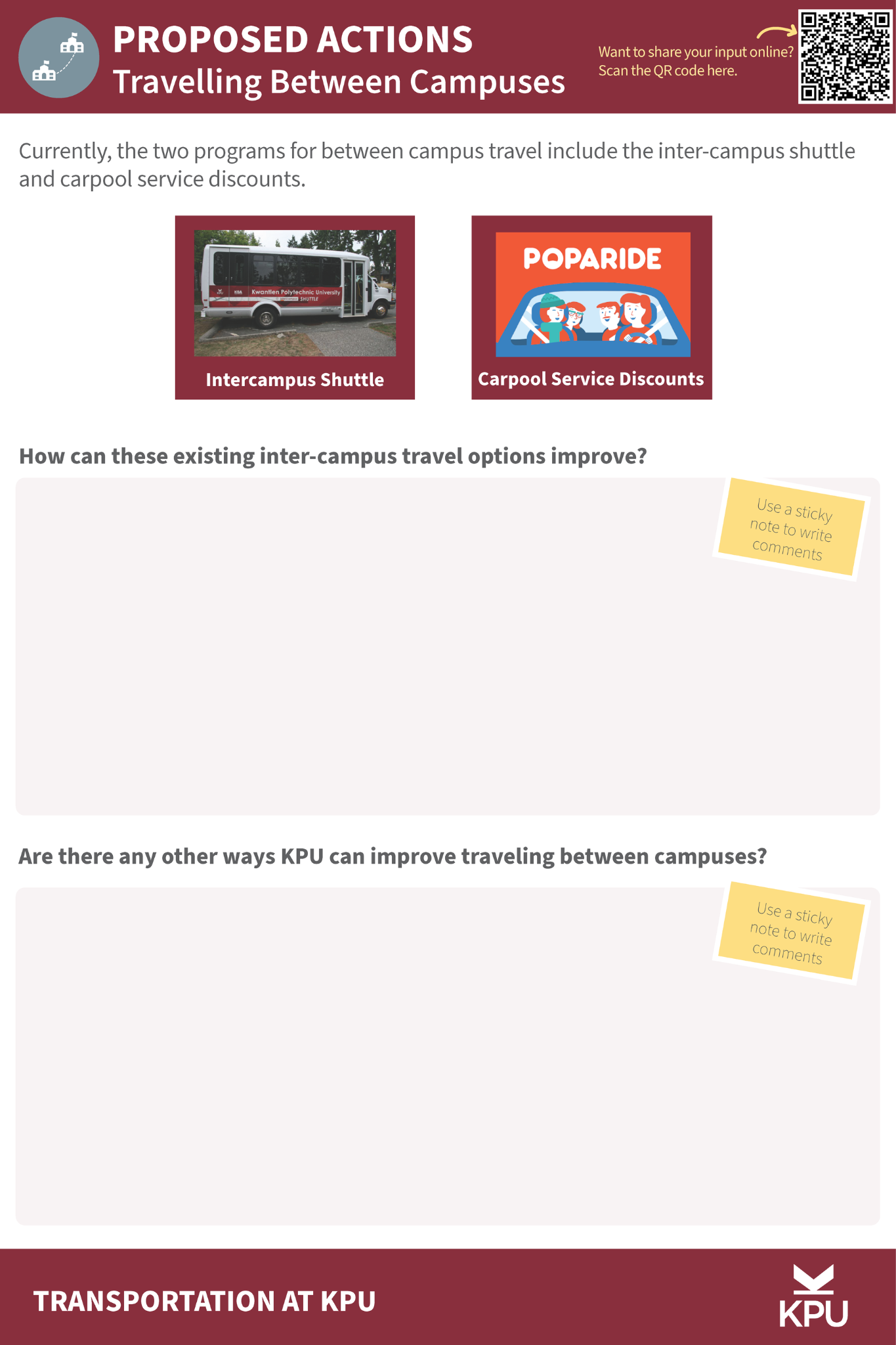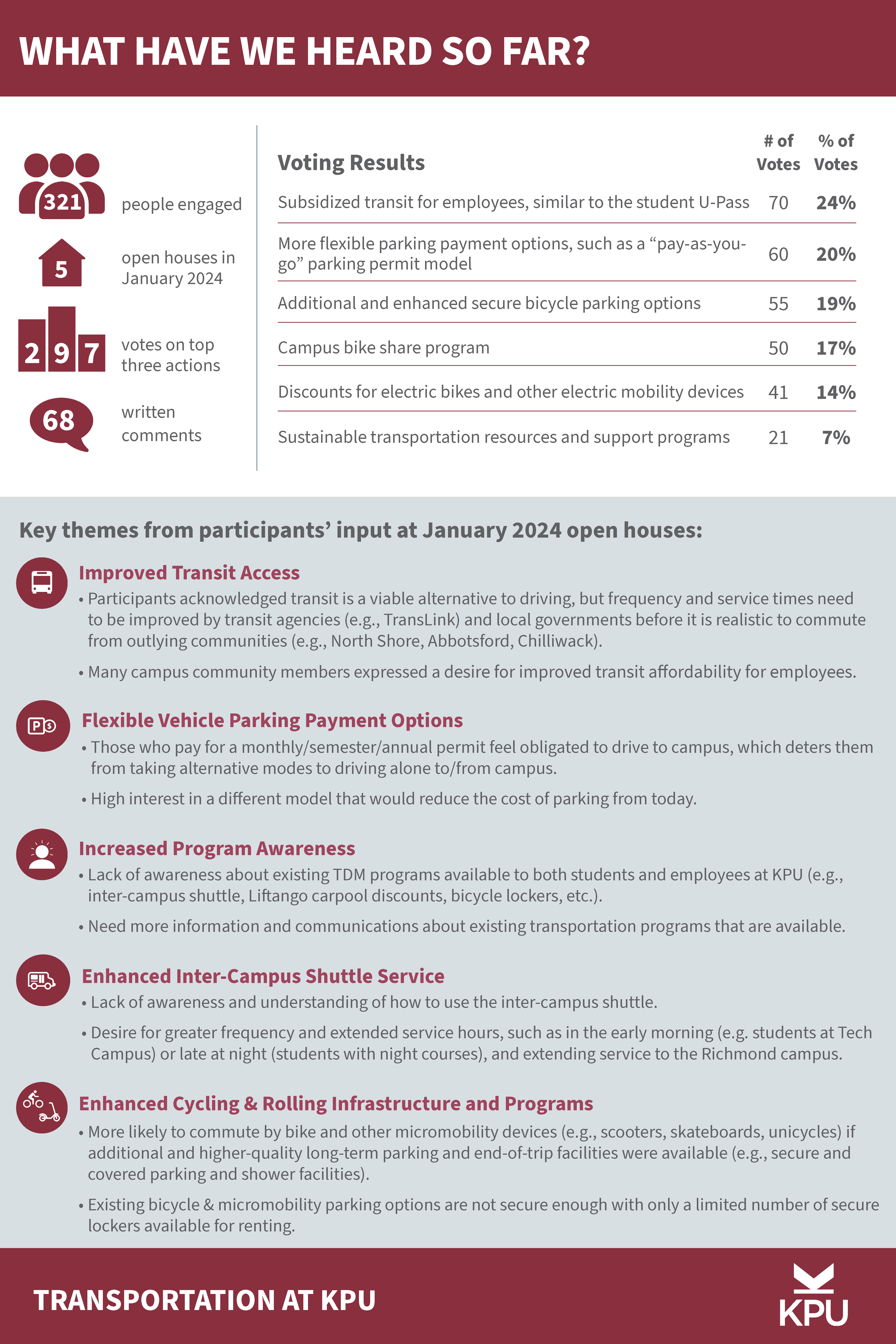 Throughout April 2024, KPU's Campus and Community Planning team visited each campus to seek input on the development on KPU's first Transportation Demand Management (TDM) Strategy. The TDM Strategy aims to shape how students, faculty, and staff travel to and from campus by supporting people to reduce drive-alone commuting trips.