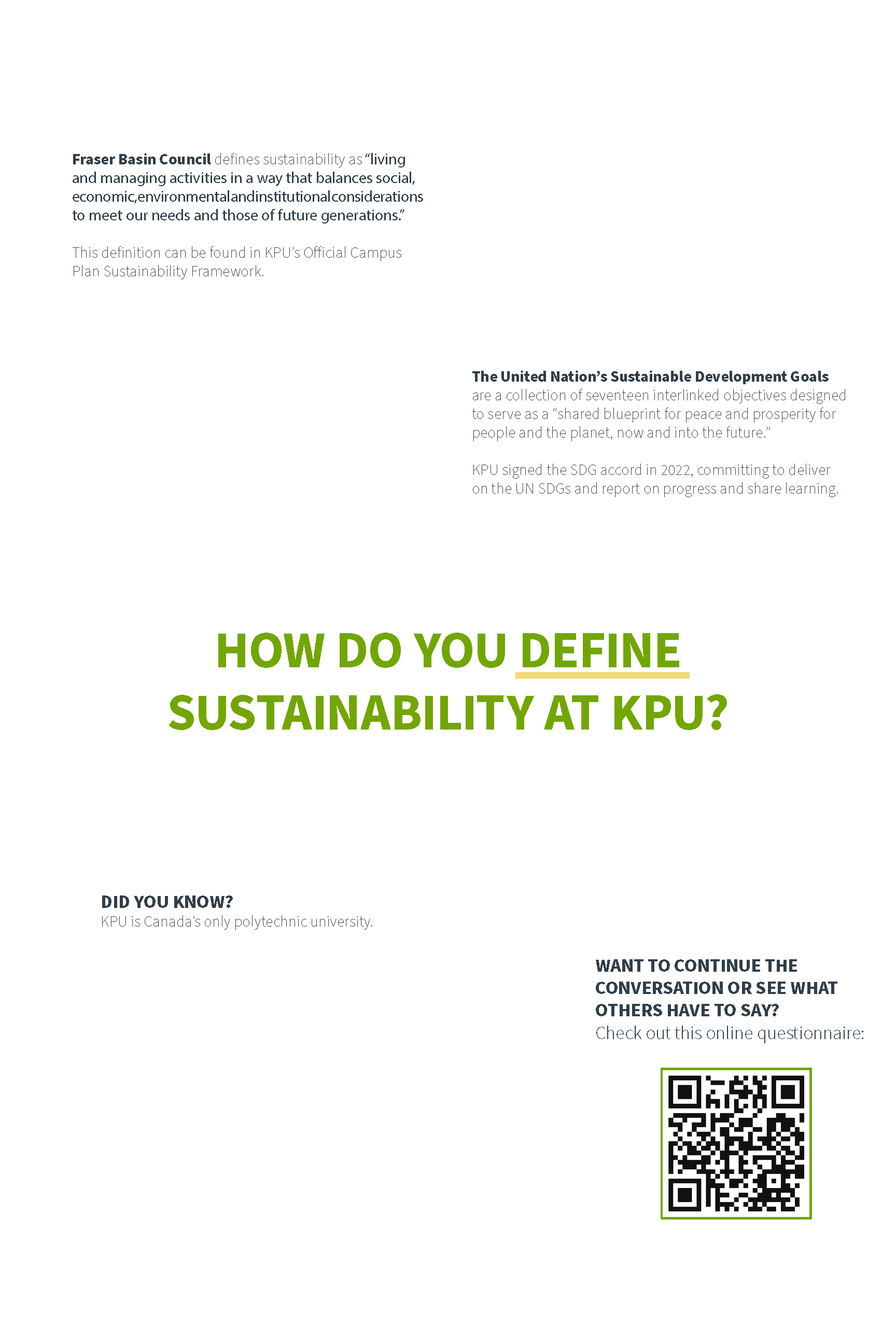 KPU’s inaugural Sustainability Report reflects the university’s commitment to a holistic approach to sustainability, recognizing the complexity, interrelatedness, and intersectionality of sustainability challenges.