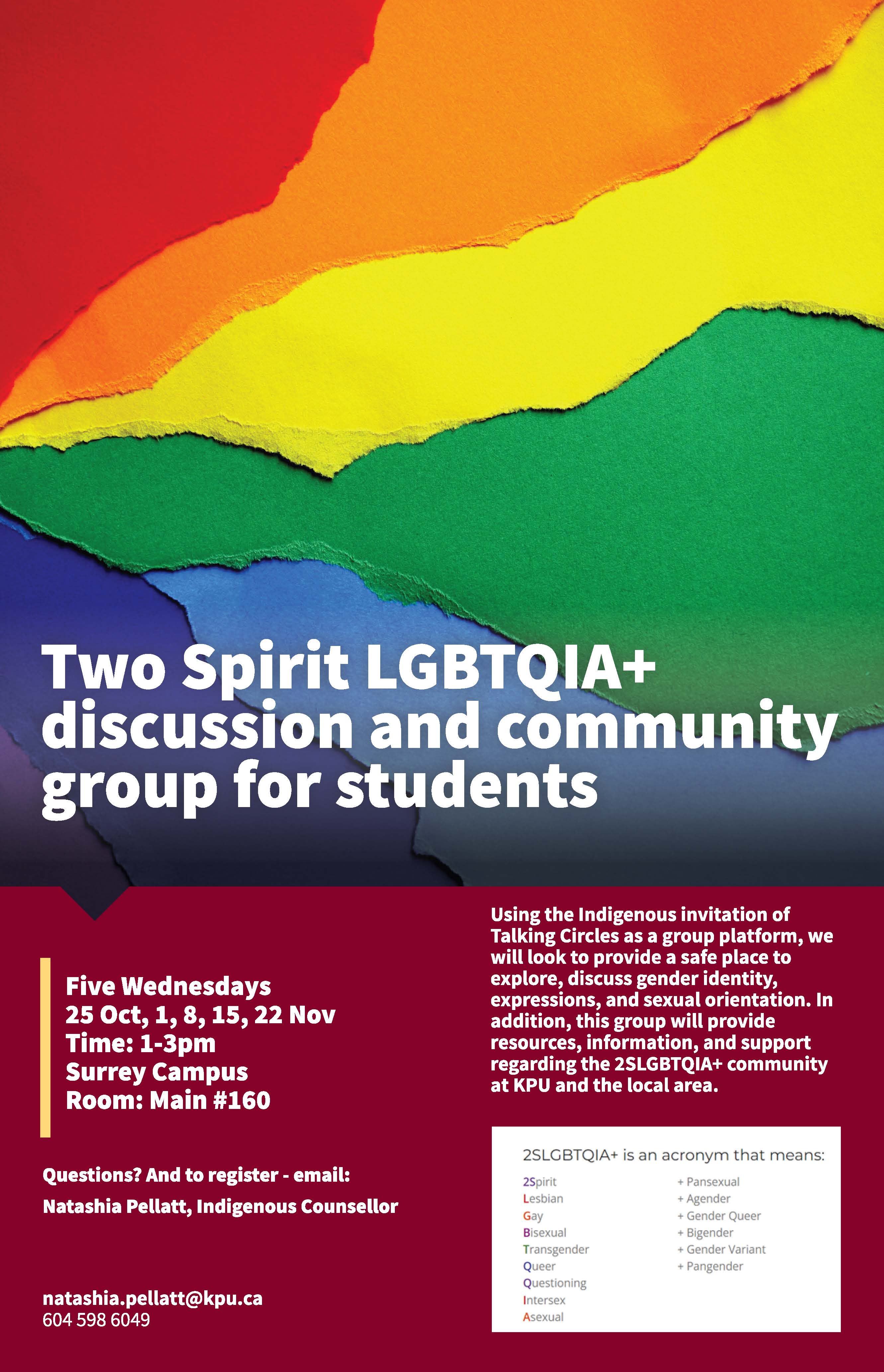 Two Spirit LGBTQIA+ Discussion and Community Group for Students