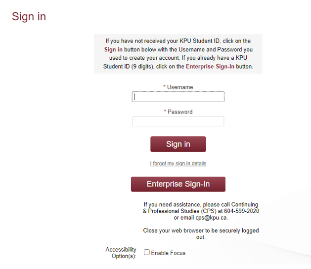 If you don’t remember your student number, contact the CPS office at cps@kpu.ca or 604-599-2020.