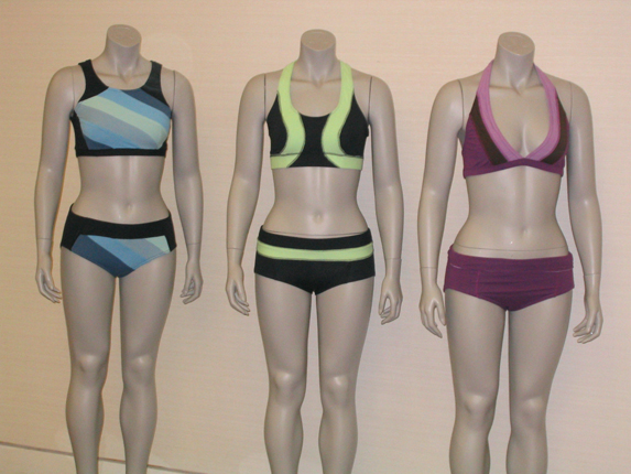 Swimsuits designed by Kwantlen Fashion Design degree students (from left to right): Ming Peng, Jennifer Lynch and Calli Birch.