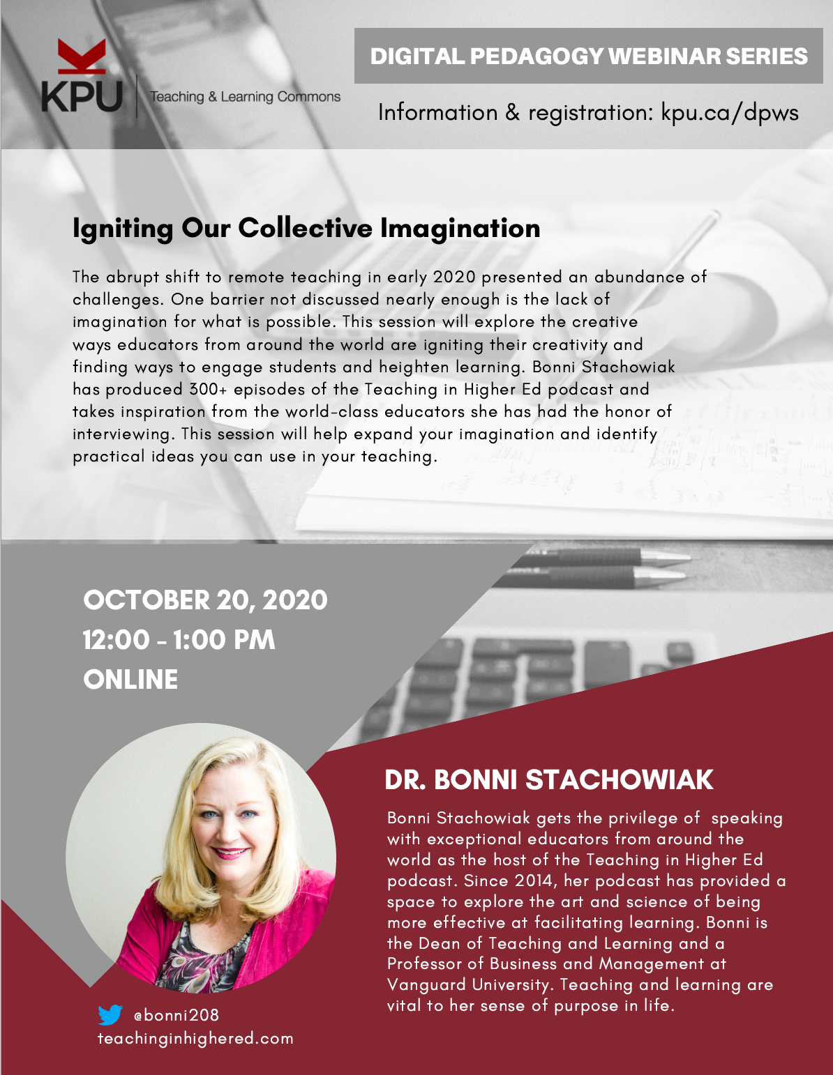 The abrupt shift to remote teaching in early 2020 presented an abundance of challenges. One barrier not discussed nearly enough is the lack of imagination for what is possible. This session will explore the creative ways educators from around the world are igniting their creativity and finding ways to engage students and heighten learning. Bonni Stachowiak has produced 300+ episodes of the Teaching in Higher Ed podcast and takes inspiration from the world-class educators she has had the honor of interviewing. This session will help expand your imagination and identify practical ideas you can use in your teaching.