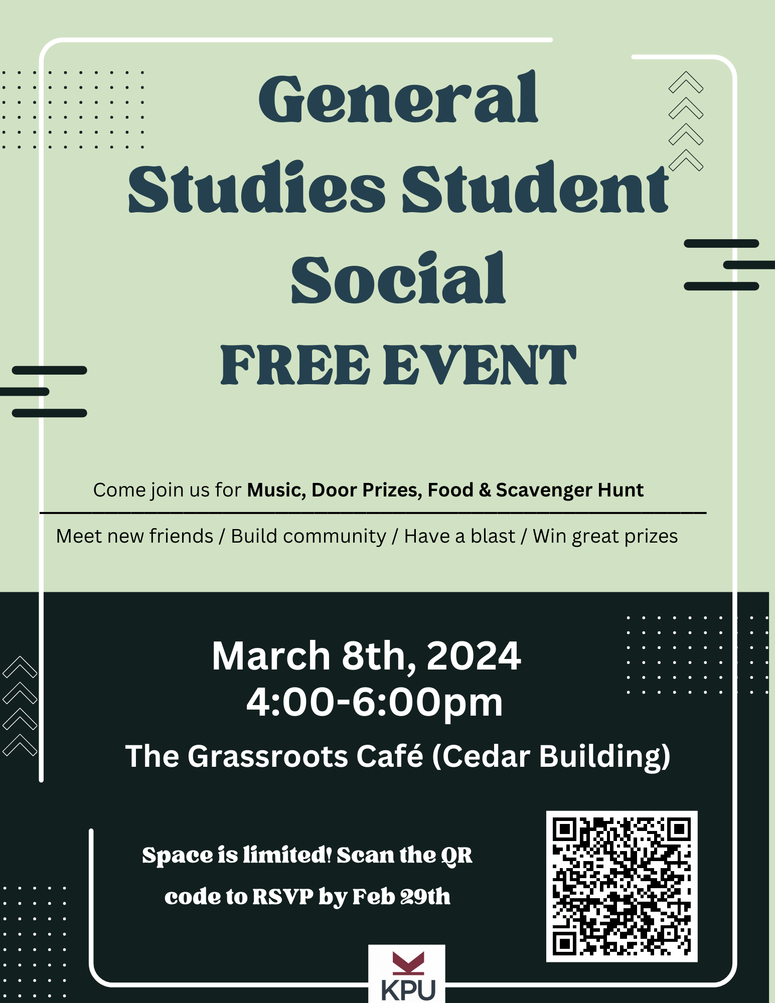 Use the QR Code to RSVP on the image below before February 29th and secure your spot or email dianne.simmons@kpu.ca.