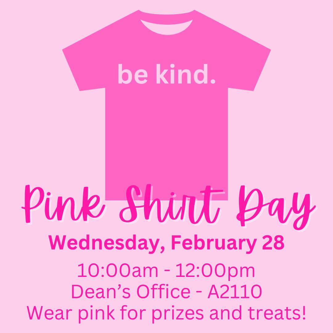 Spread Kindness with the Faculty of Arts on Pink Shirt Day! Get ready to rock your pink shirts on Wednesday, February 28 because Pink Shirt Day is almost here! The Faculty of Arts invites you to spread kindness and stop by our office for some sweet treats.
