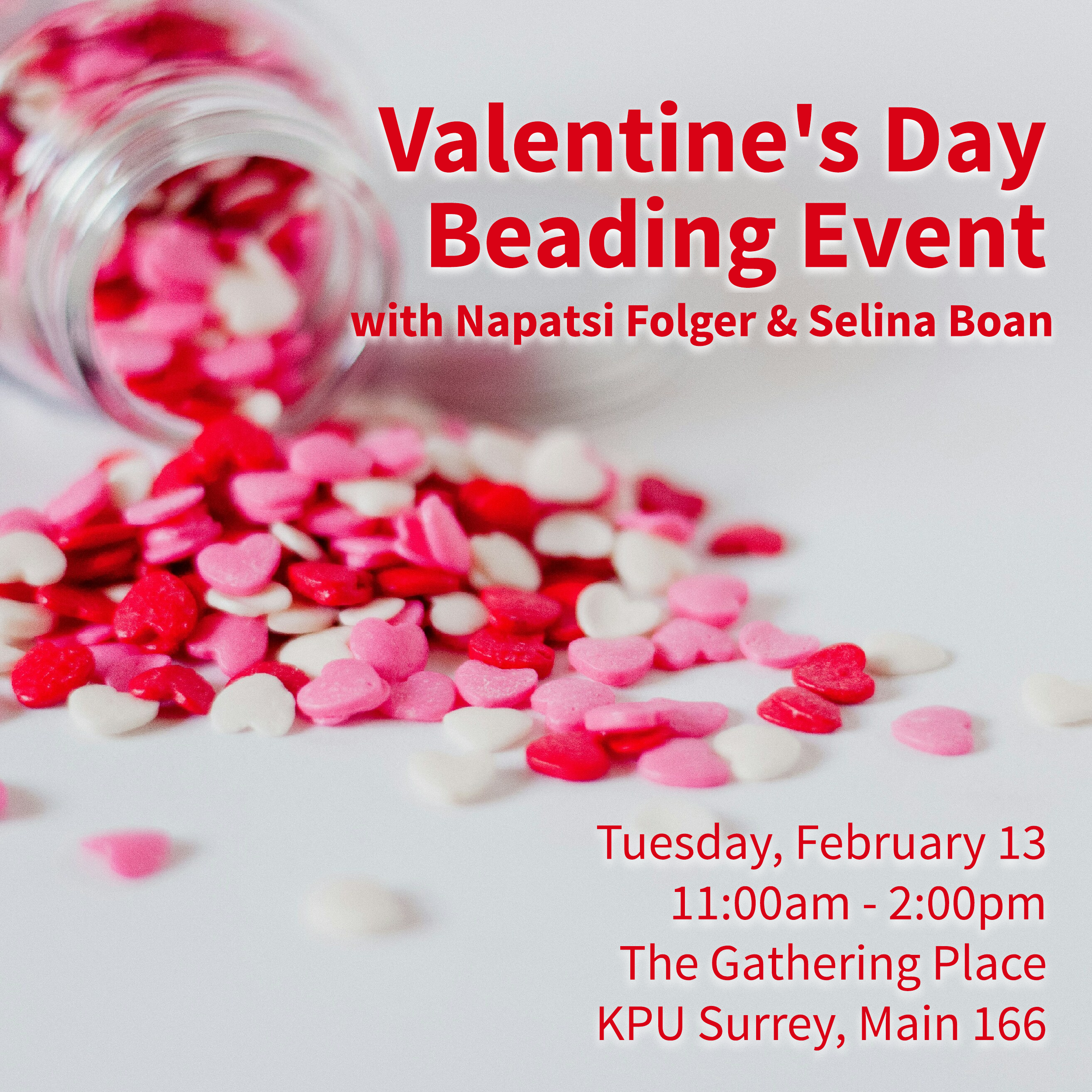 Napatsi Folger, Indigenous Writer and Artist in Residence, and Selina Boan, Indigenous Writer and Artist in Residence will lead us through some Valentine's themed bead work.