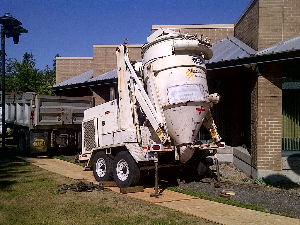 Progress: The contractor is mobilized. The vacuuming of the ballast on the library roof commenced. The scaffolding at the South West wing are being erected. |