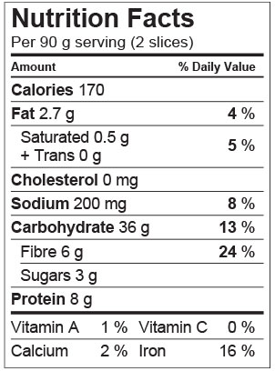 2. Are the values for dietary fibre, Vitamins A and C, calcium, and iron high?