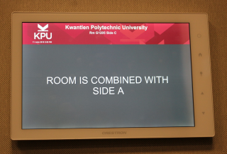 Kwantlen has two large conference rooms, one at each of the Surrey and Richmond campuses. They are located in Surrey Cedar 1205 and Richmond 2550. Each room is sub-dividable into smaller rooms. The Surrey Conference Center can be divided into three smaller sections and Richmond can be divided into two smaller sections - about a 60/40 split.