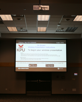 | Instructions to connect your device to the projector wirelessly will appear on the projector screen. For a closer look at some sample instructions, click here to view a Wireless Presentation Instruction Screen or click on the image. | Image