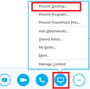 2. Click on the desktop/present icon at the bottom and select Present Desktop.