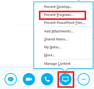 3. Click on the desktop/present icon at the bottom and select Present Program.
