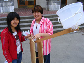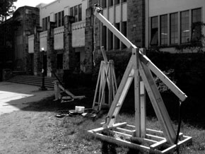Build a catapult that will hurl a 500 g water balloon as far as possible. Click here for the original rules.