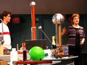 Once again, Dr. Peets blew things up with his liquid nitrogen cannon, creating somewhat of a JPEC tradition for lunch time entertainment (this year it was oranges and rubber chickens). In the afternoon, Dr. Milner and her skilled assistants delivered some physics magic in the Hebb Theatre.