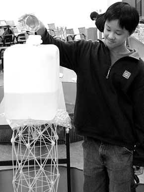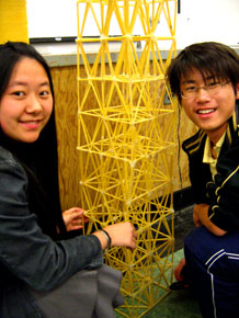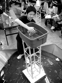 Build a tower out of spaghetti that holds up as much water (in a bucket, or whatever) as possible compared to the weight of the tower itself. Click here for the original rules.