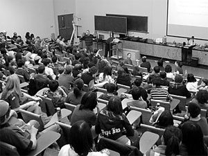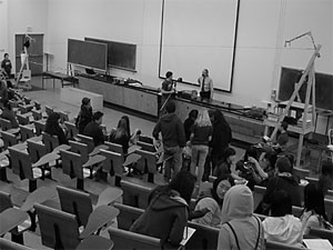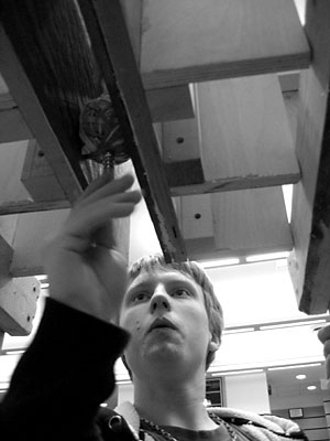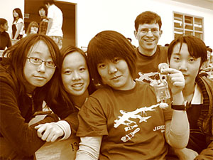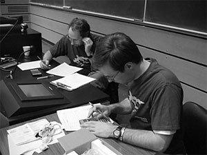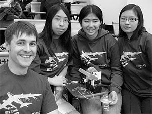 Using only a meter stick, rubber bands, and several known masses, determine the mass of a hand-sized rock. Score was based how close the teams were to the true weight of the rock. This was far and away the most successful event, with 1/2 of the teams accurate to within the magic 10% of the correct weight. In this case, beating the top team would have been hard—they were only 1 gram away from the correct weight. HOLY COW.