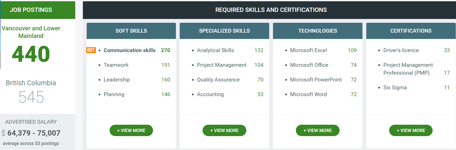 Sources: https://worxica.com/; WorkBC; https://payscale.com; Robert Half Salary Guide 2021, Randstadt Salary Guide 2021