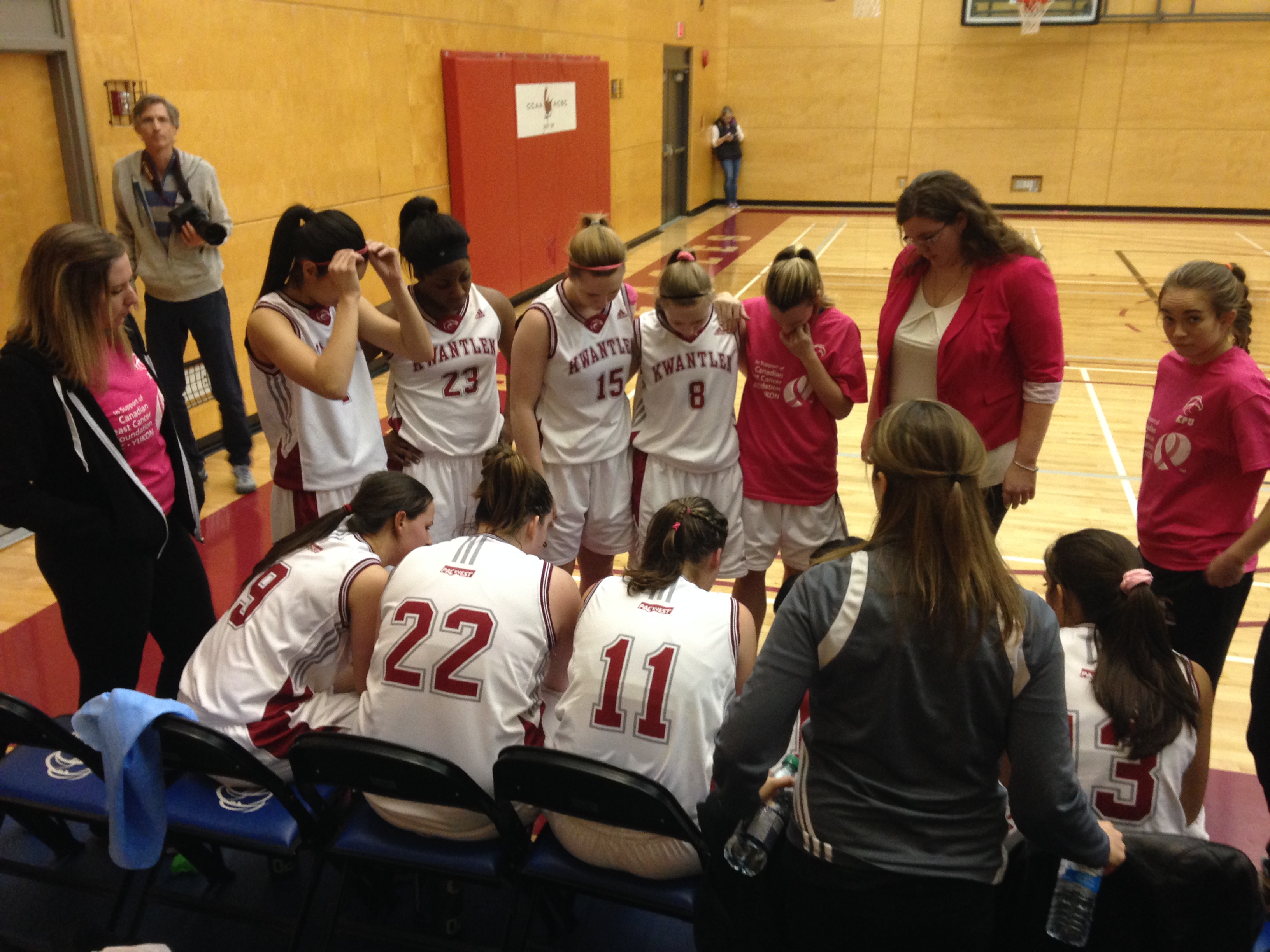 Metro Vancouver.....The KPU Eagles department of athletics and recreation, along with the Eagles women's basketball program, thank everyone who supported last Friday night's second annual 'Breast Cancer Awareness Night' to raise funds for the Canadian Breast Cancer Foundation's BC and Yukon chapter. The Eagles silent auction, t-shirt sales, and game admissions for the night raised $1350 for Breast Cancer research, which surpassed the $1100 goal; the amount raised in the 2014 campaign.The event coincided with KPU's regular season PACWEST CCAA basketball games versus the VIU Mariners.