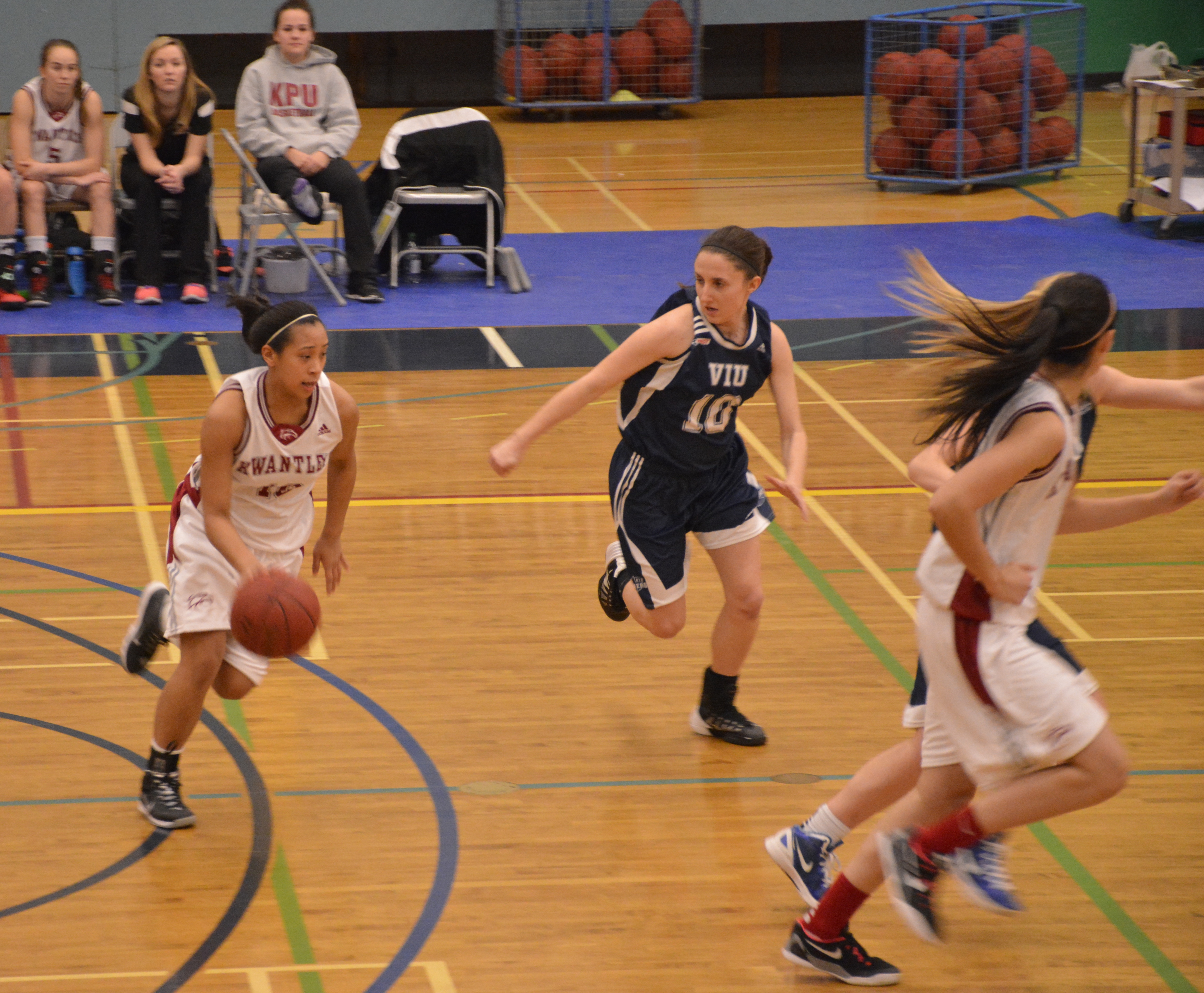 KPU point guard Jessica Villadiego runs the ball against VIU
