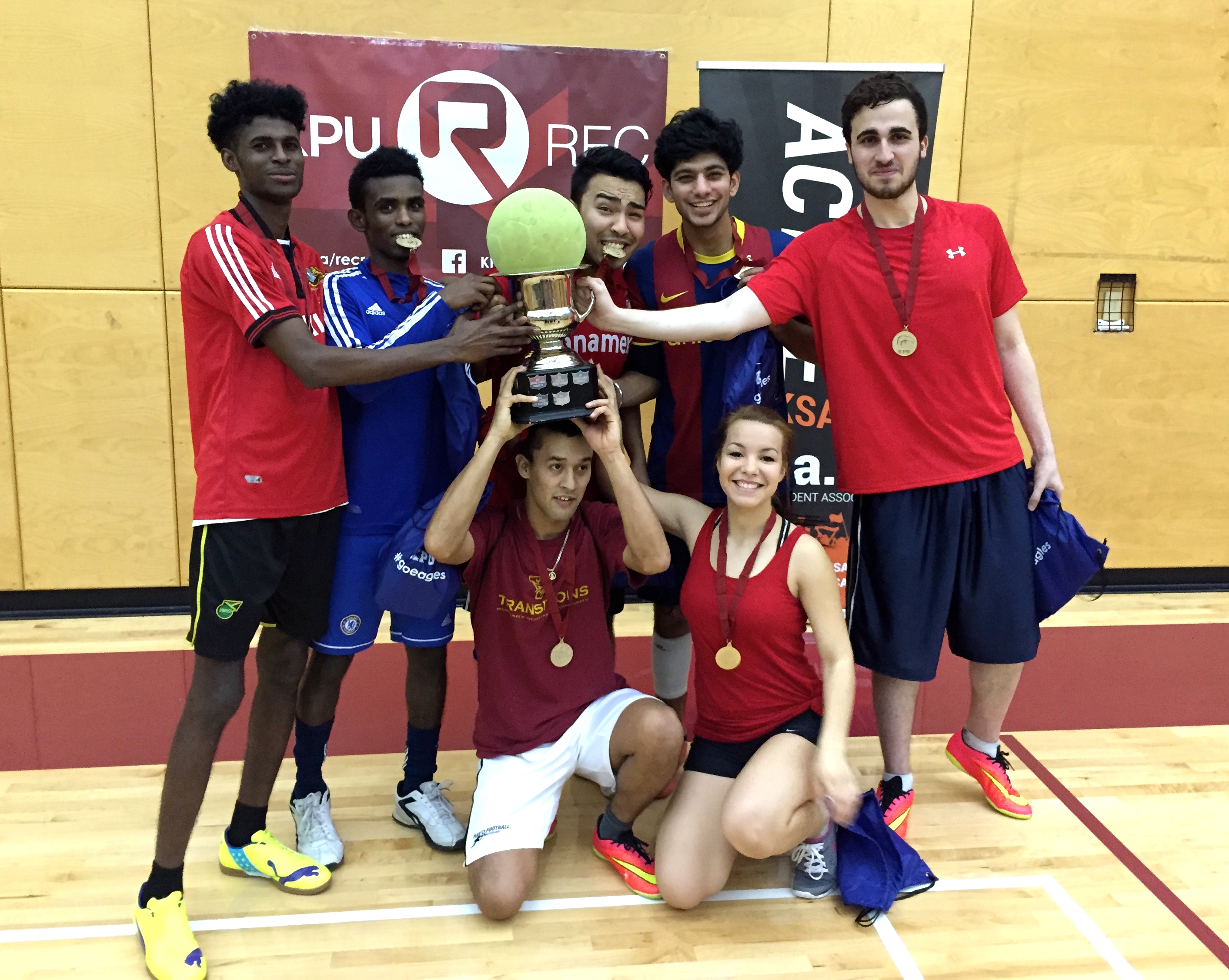 FC Barcelona team members each took home the coveted golden KPU Rec Champion t-shirts, gold medals, water bottles, and $25.00 gift cards to KSA Grassroots Cafe and Tim Hortons. Also winners in the 2015 Tournament were the 'Keep Up Juggling' champion Swags (Chelsey) Lal with 200 juggles and 'Fastest Kick' champion Nawaf Binsaleh with a kick of 167km/hr. Lal and Binsaleh each walked away with a KPU Rec t-shirt and $25.00 gift card to either Subway or Sport Chek.