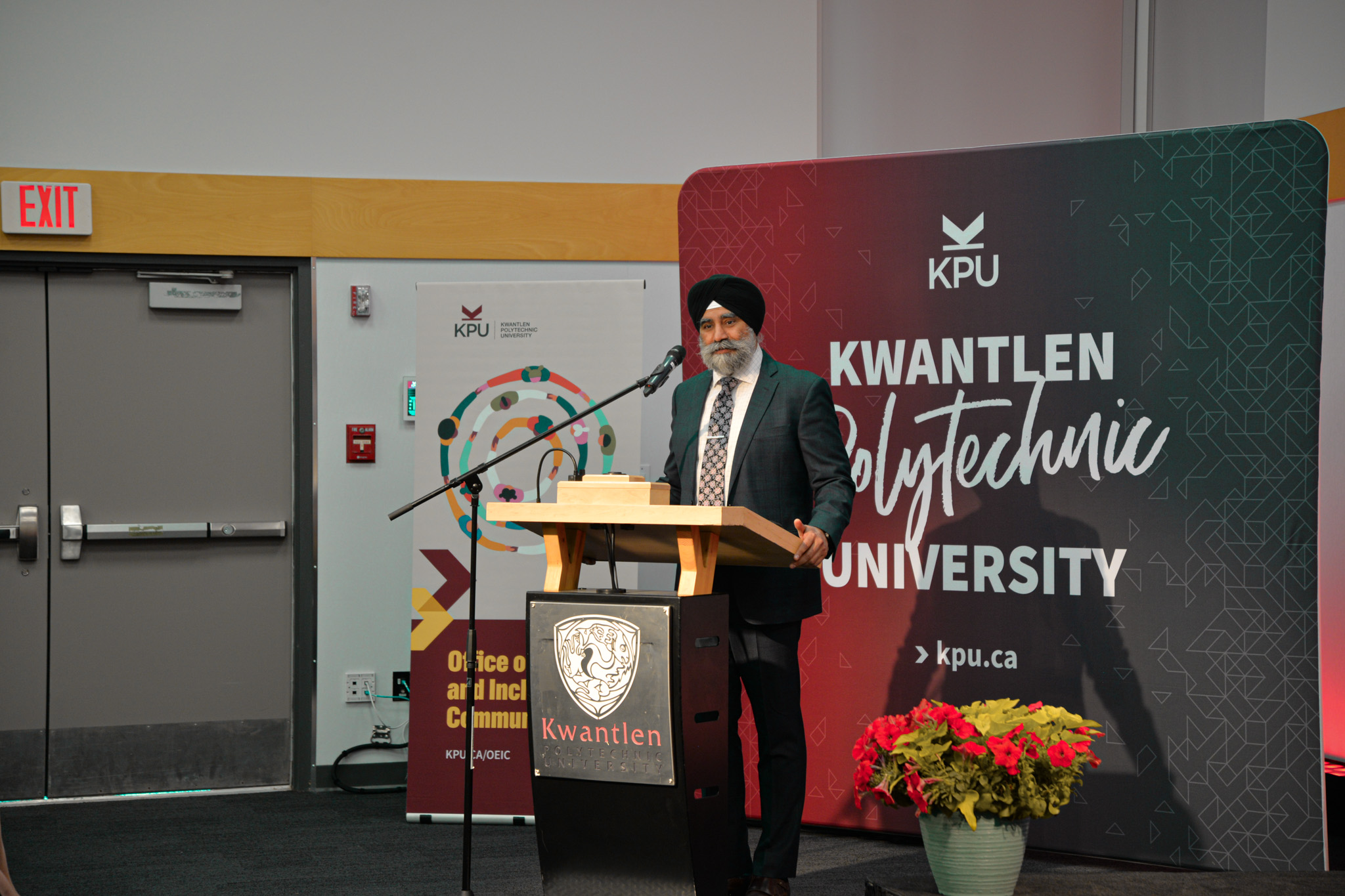 The EDI Action Plan was launched at KPU Surrey on July 22. The keynote speech at the launch event was provided by Canadian Senator Baltej Dhillon, a KPU graduate who had a successful 30-year career in policing, playing a key role in several high-profile investigations and in various leadership positions. In 1991, Dhillon became the first Royal Canadian Mounted Police officer to wear a turban after advocating for the right to practice his faith while serving.