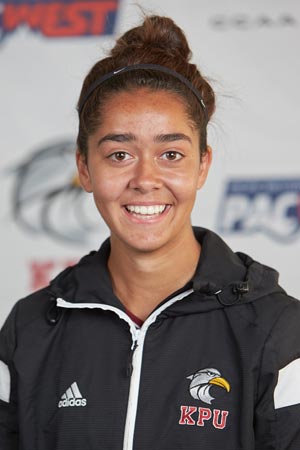 Gillette, a first-year forward, is a talented and versatile player whose confidence and drive is evident in all she gives on the pitch. Recognition is given not only for her strong contributions in her inaugural year as an Eagle, but in particular her assist and goal in this weekend's win over the Langara College Falcons. In the first half Gillette fed a pass to KPU second-year forward Megan Talaber, Delta, BC to put the Eagles back in the match with a 1-1 tie. In the second half on a breakaway, Gillette caught the Falcons goalkeeper out of position and sent in the winning goal to keep KPU's playoff plans alive with the 2-1 victory. Off the field she is a constant source of support and humor for her teammates, coaching staff, as well as a close confidante of women's soccer's other main bird, Chuck the Chicken. "Lexie has embedded herself as an integral player for KPU, both on and off the field. Her performances his weekend, whilst no surprise, are the hallmark of Lexie's contribution this season," stated Eagles head coach Julie King.