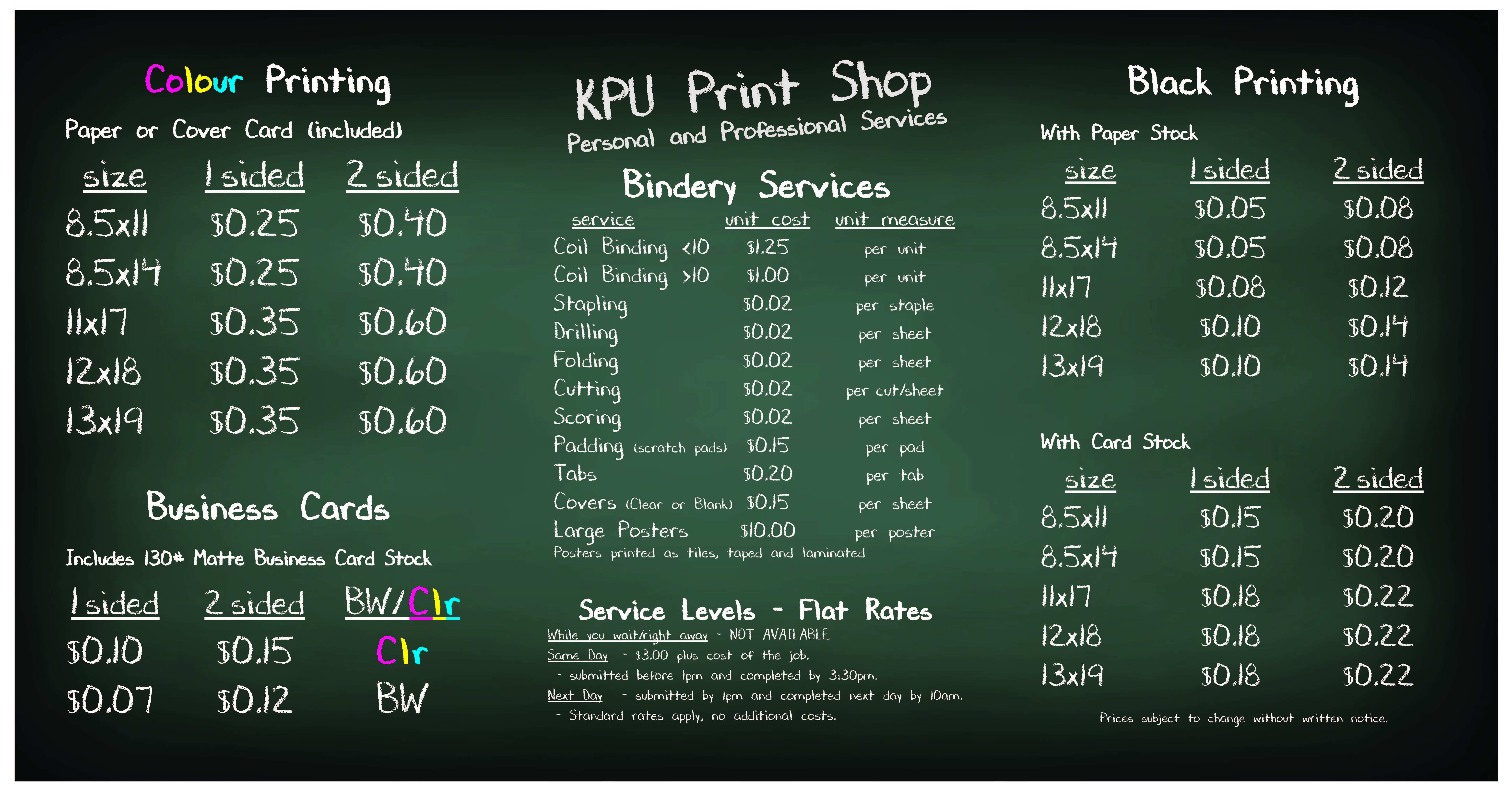 For additional information, please contact us here. or send us an email: printing@kpu.ca