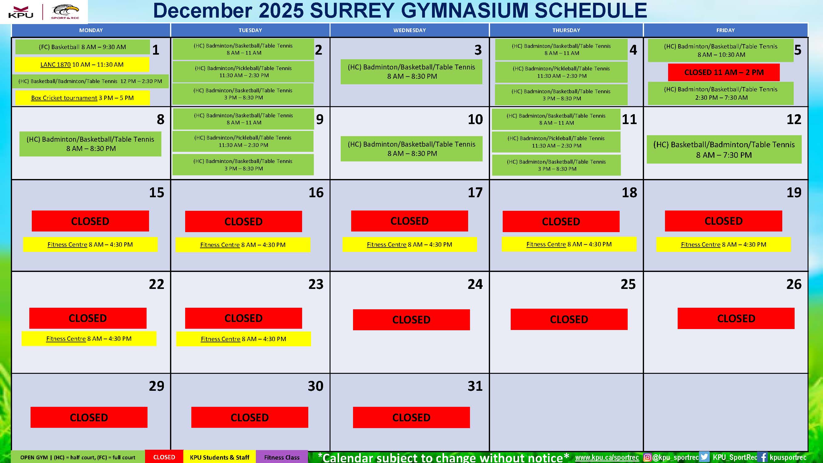 Daily movement, eating nutritious food and getting adequate sleep contributes immensely to your success as a student. Physical wellness is about discovering healthy habits that suit your lifestyle, level of mobility and current state of health. Remember, improving and maintaining your physical wellness is a continuous process and not something that happens overnight. KPU Sport and Recreation is here to encourage and support you along your fitness journey.