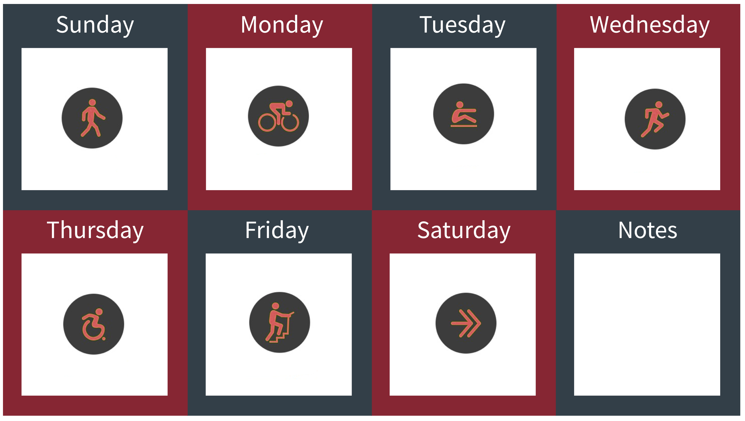 Download this E-fillable Weekly Activity Tracker (click here). Keep yourself accountable for your daily and weekly movement. Create a copy for each week and fill it in as you go along.