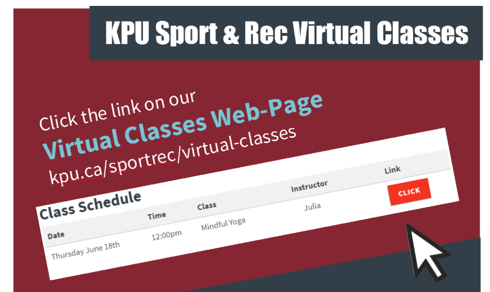 Be sure to checkout kpu.ca/sportrec/virtual-classes for more details!