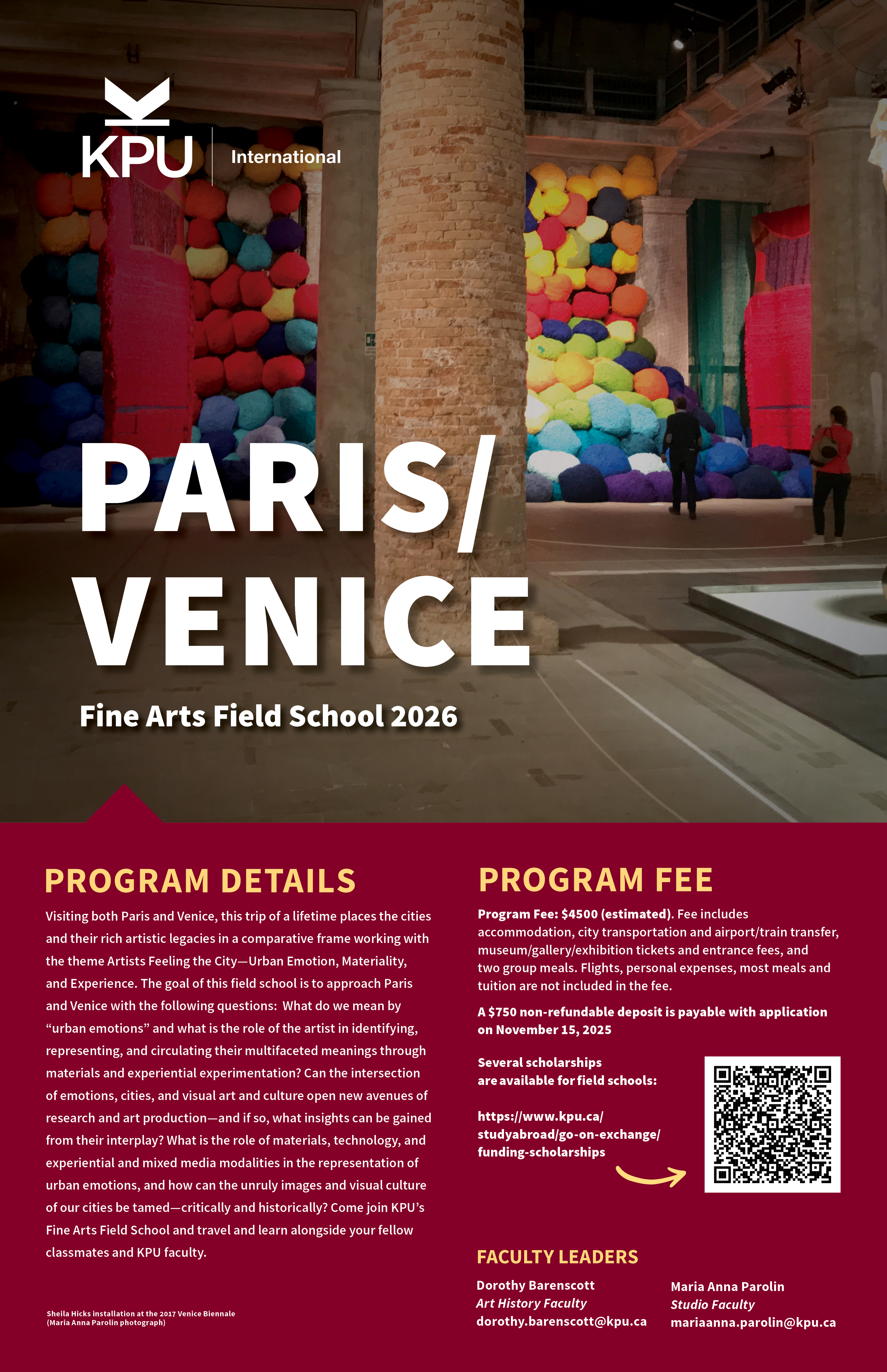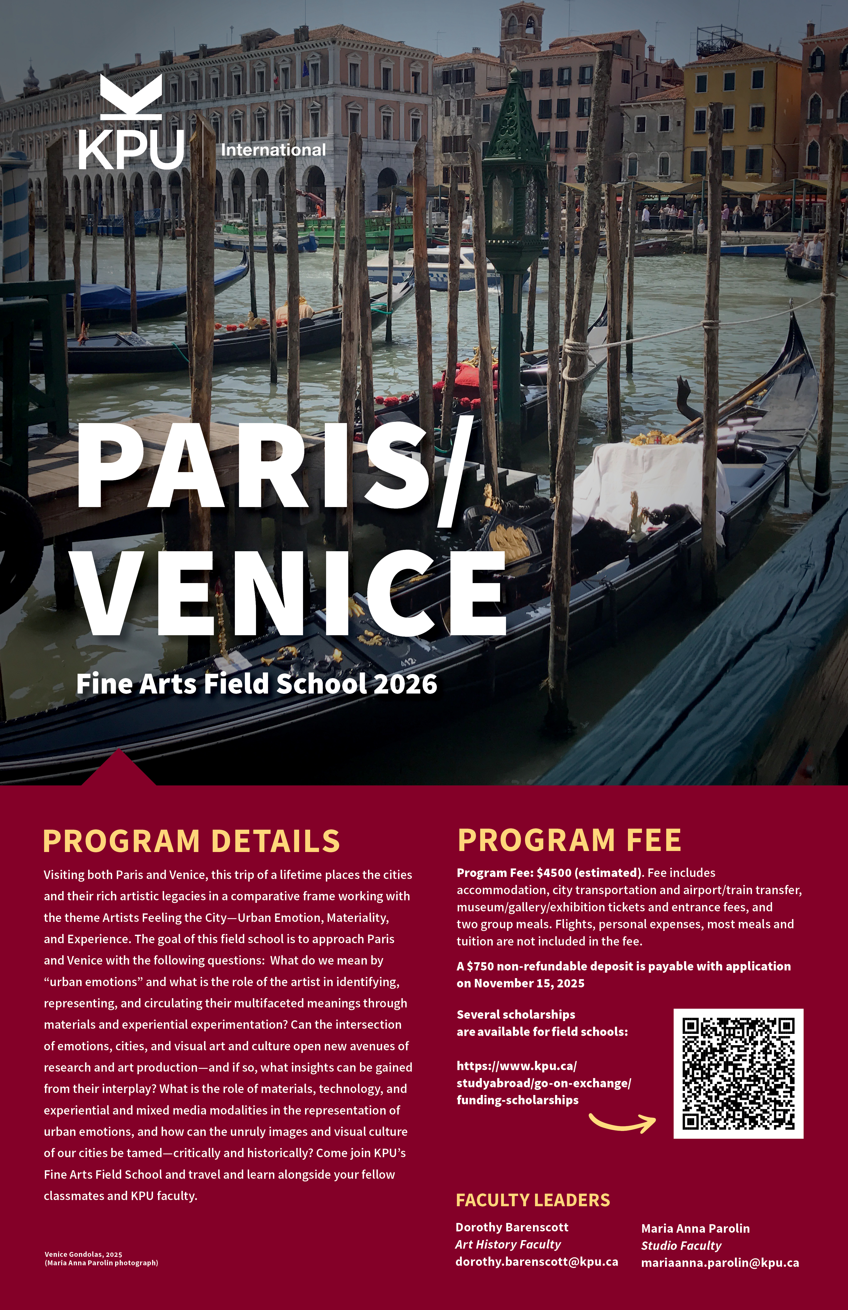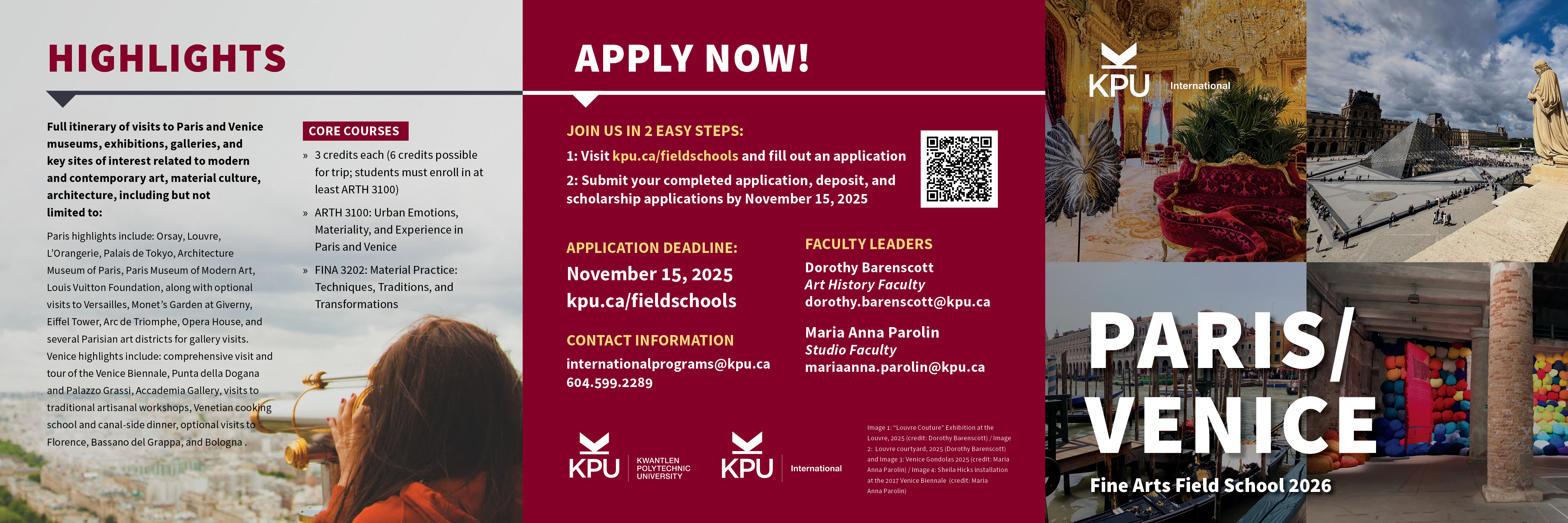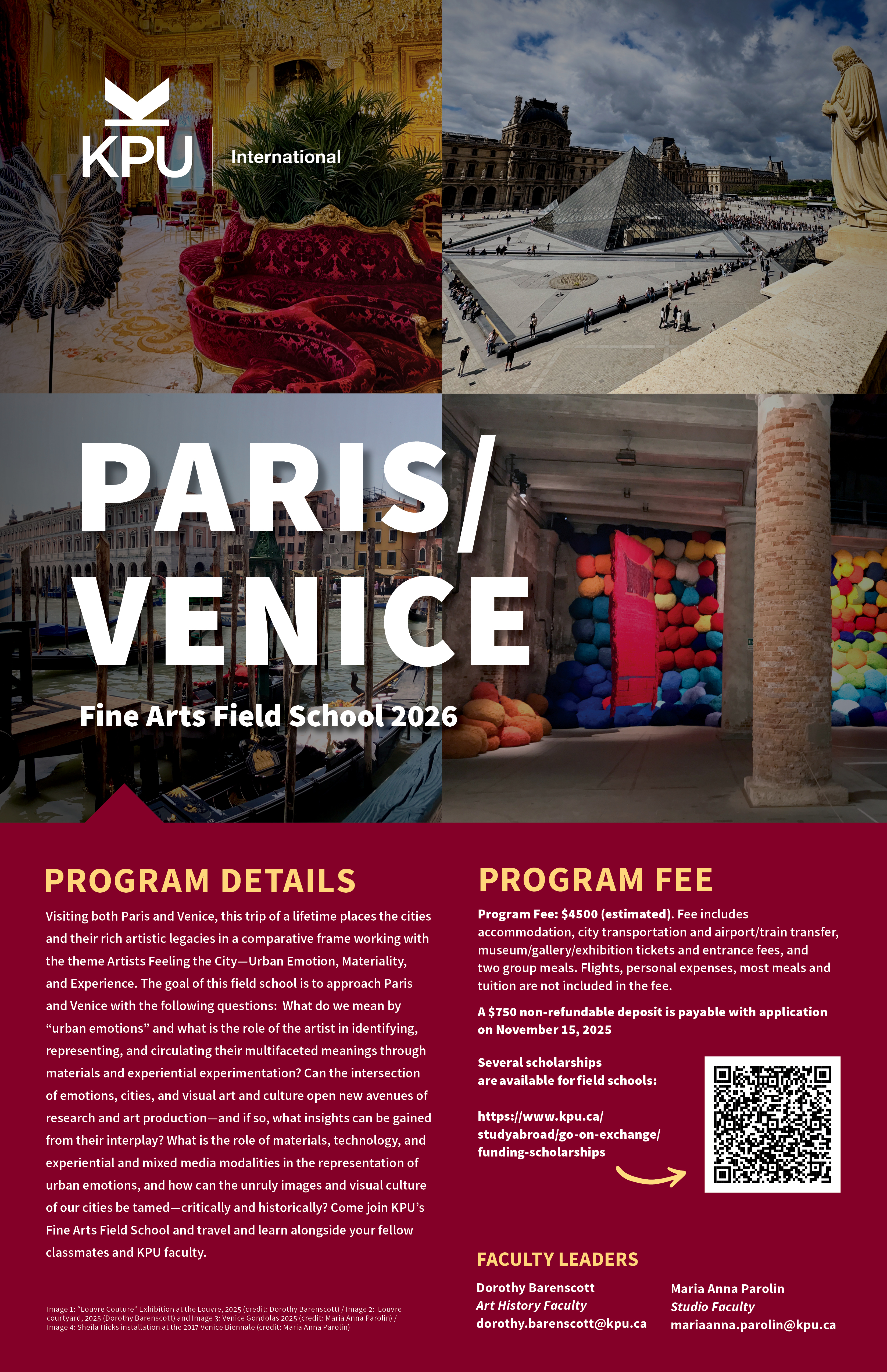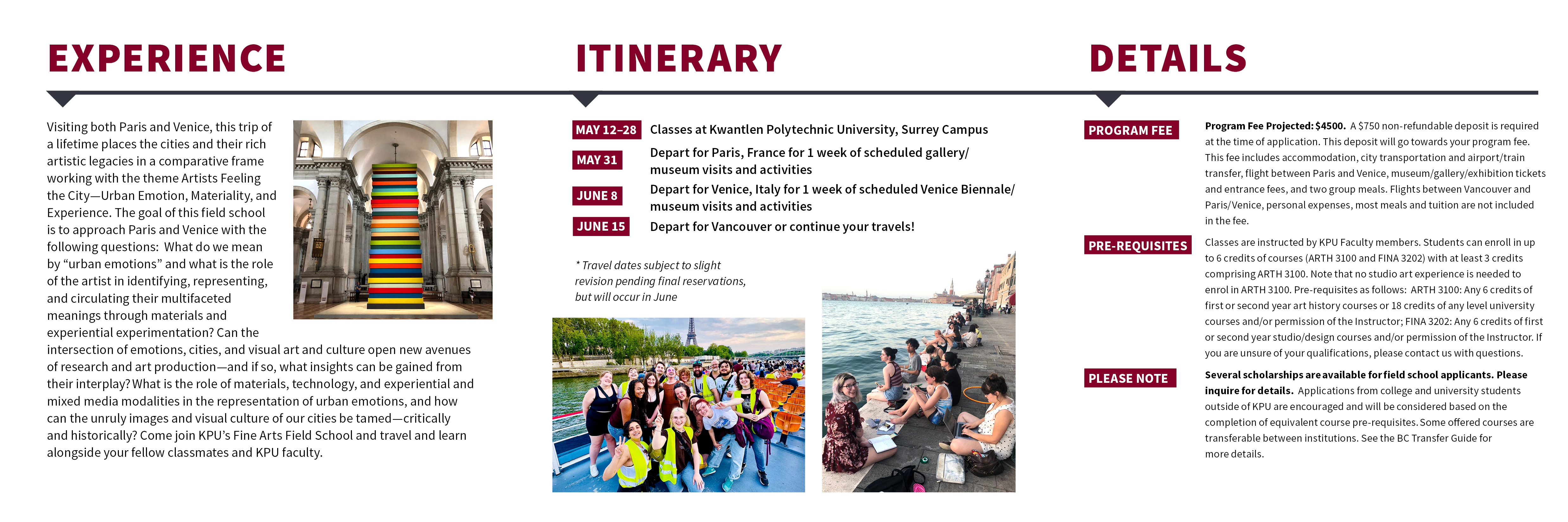| Travel Dates* | May 31 - June 15, 2026 | Paris, France and Venice, Italy |