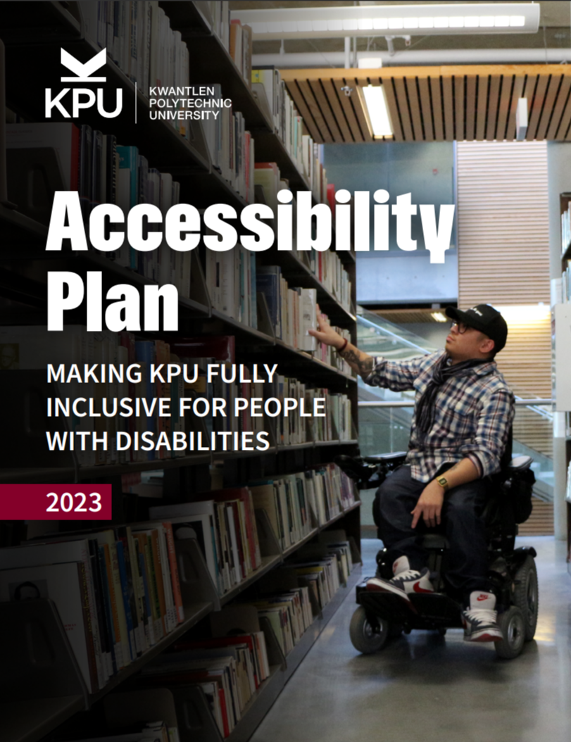 Kwantlen Polytechnic University’s first-ever Accessibility Plan seeks to address identified barriers and challenges to disability justice and inclusion through a series of recommendations to enhance accessibility, equity, and inclusion for our campus community. The plan is informed by the direct experience of students and employees with disabilities who serve on KPU’s Accessibility Committee in addition to a synthesis of data from various sources, including recent surveys of students and employees. This plan identifies barriers across several categories and provides recommendations aligned with KPU's Vision 2026 themes.