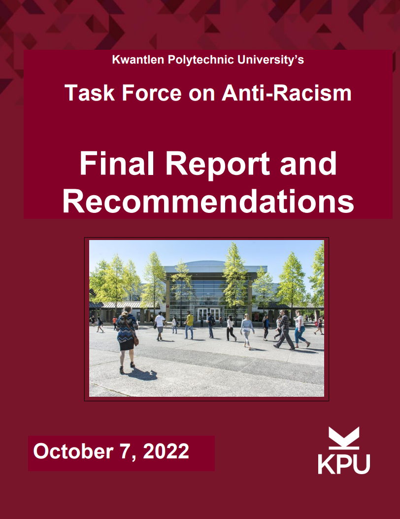 Kwantlen Polytechnic University’s Task Force on Anti-Racism Final Report and Recommendations function as both a call to action and a guide that will help the KPU community take ongoing, meaningful steps to transform the university. The report highlights the need for ongoing anti-racism work, and the benefits of building and sustaining anti-racist institutions.