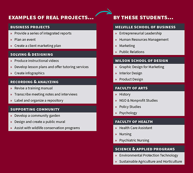 For employers, hiring students can bring new ideas that companies need. These experiences may lead to the hiring of future employees. For students, WIL experiences are an opportunity to practice what you have learned in class and apply it in workplace and/or community settings. These hands-on experiences can facilitate networking as you introduce yourself to prospective future employers and/or community leaders.